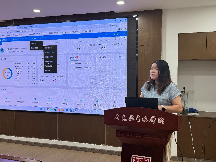 张振海书记首先传达了学校层面的就业要求,分析了当下的就业形势,并对学生们提出了几点要求,首先是提高政治站位,作为马克思主义理论专业的学生,要将个人成长与国家需求结合起来;其次是要认清就业形势,转变就业观念,积极主动寻找就业机会;最后,面对学业、就业压力,要放平心态,调整好情绪。接着,刘海存老师分析了2026届学生的毕业要求,提出要平衡好就业和学业二者的关系,做好规划。就业方面,他引用麦穗理论,引导学生明确就业目标,积极寻找工作;学业方面,要求毕业班学生重视即将到来的论文中期检查与最后论文撰写工作。最后,何云梦老师向学生们讲解和演示了我校智慧就业服务平台与毕业去向登记系统的使用,建议学生利用好智慧就业平台,多关注就业市场相关信息;网签完成后,及时、准确地在毕业去向系统中进行信息填报,确保后续派遣与档案流转等工作顺利进行。
